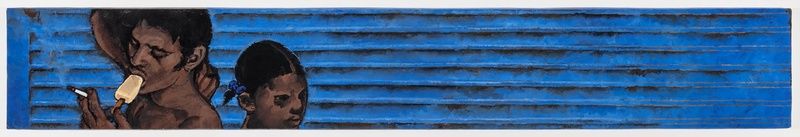 Martin Wong (1946–1999) was a prolific painter of New York City’s gritty, textured cityscapes. His works stand as semi-autobiographical registers of the Lower East Side and Chinatown in the 1980s and ‘90s, merging details of his life with a rich and poetic imagination. The New York Times describes Wong as “the self-dramatist; the mythologist; the existential tourist; and the virtuoso realist.” Oftentimes he employed trompe l’oeil effects, mimicking the characteristics of his surroundings in combination with other recurring motifs—constellations, billows of smoke, shuttered storefronts—that give these scenes an apparation-like quality. Wong moved to New York in 1978 and soon became friends with artists also moving into the East Village, including Charlie Ahearn, Jane Dickson, Julie Ault, and Keith Haring. He became close with poet and playwright Miguel Piñero, who often appears in his paintings. Poetry and text were also important to Wong, whether borrowing Piñero’s words or found within his ongoing series of works “for the hearing impaired.”