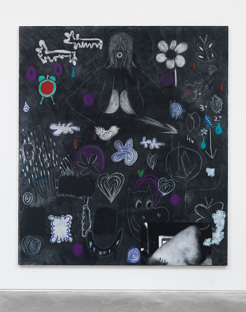 Charcoral, Pastel, Permanent marker, oil stick, gesso on canvas