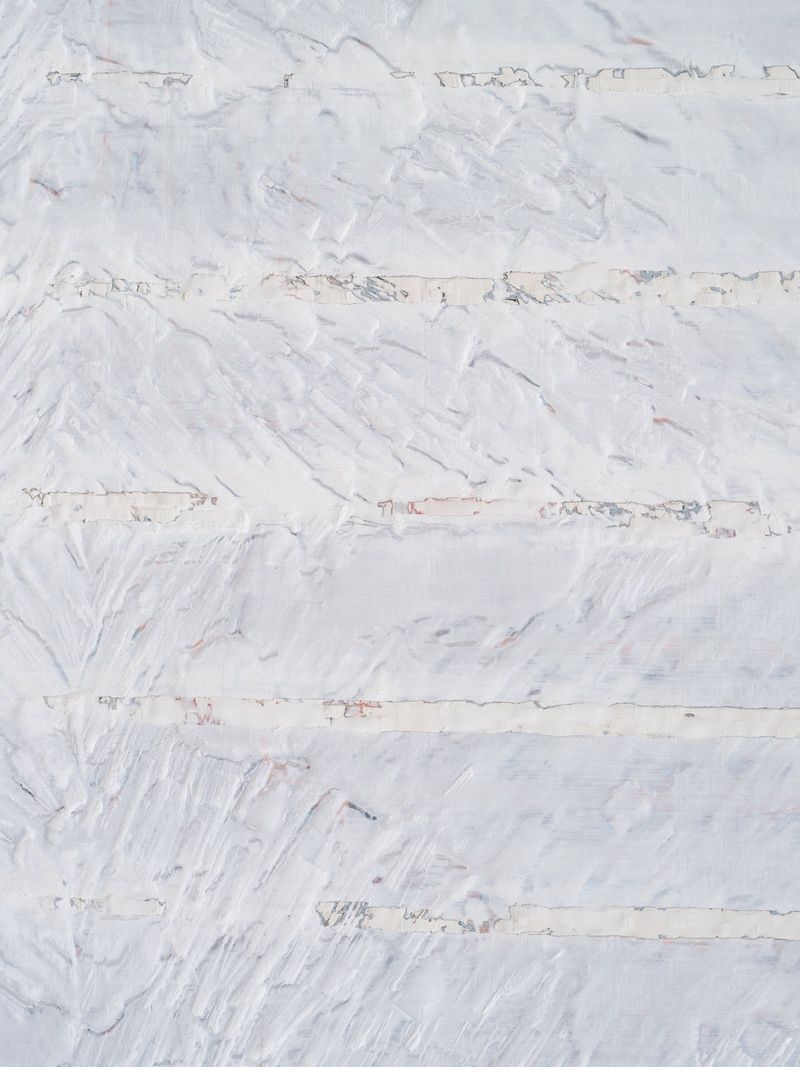 Created together over the last year and a half, Dickinson’s new paintings, And-Hold, And/With, And: Now, And-Knows, and And: Is can be understood as material palimpsests. Each is distinct in its particular expanding light and atmosphere, grounded in a surface that reveals more through time and attention. Deeply invested in abstraction as a way to understand change through duration, Dickinson layers the paintings through countering events to forge something solid and present. Working with oil paint on a plaster-like ground, which can be incised into, carved out, and rebuilt—and which carries with it a specific capacity to hold light—they are unified by a ritual process of creating correlating remainders: graphite rubbings made to record their changing terrain. By the time of their completion, each painting is accompanied by approximately 12-20 remainders, which together comprise the final work.