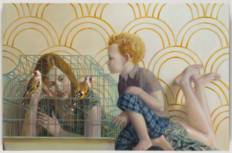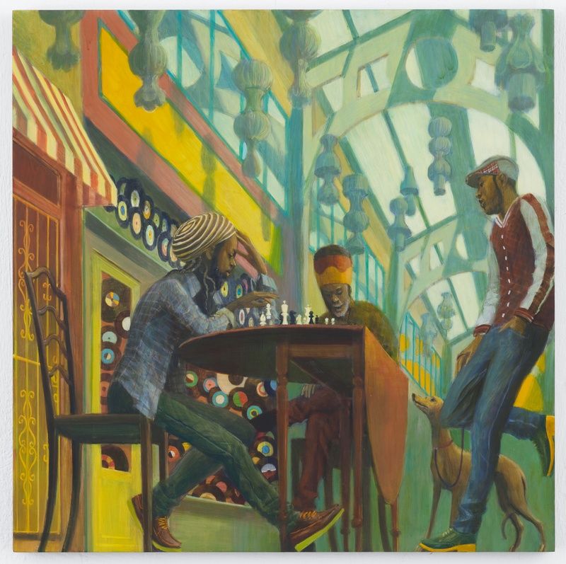 Known for his dynamic paintings of athletes in motion, Senior has said that he chooses his subject matter because it is in these moments that human figure becomes abstracted. The subject provides a springboard for the artist’s obsessive games of composition and construction. This exhibition expands Senior’s vocabulary with tableaux of parks, interiors and more. In one painting, The Pier (Run), Senior presents a woman running, scattering a number of seagulls as she passes. The blade-like wings slice the space into fragmentary windows, obscuring yet also framing and intensifying the scene beyond, creating dynamic tension between painterly flatness and illusory depth. Furthermore this painting features a parasol, a pictorial element often seen in Senior’s work.