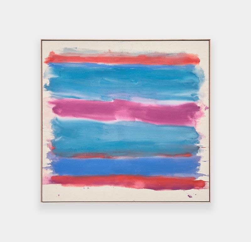 The exhibition’s title, Color Next to Color, articulates a kind of manifesto to Lipsky’s work, which reflects a lifelong fidelity to color in painting as a pure and exacting pursuit. Lipsky’s approach is rigorous and material-bound, grounded in color’s intrinsic properties and her direct negotiations with them. In her paintings, chromatic bands represent an active, dynamic force that unfolds in the optic field as Lipsky places colors in close proximity. Like syllabic repetition in text, Lipsky calibrates similar and slightly different colors in relation to each other, performing a kind of visual assonance that creates tension. Revealed rather than constructed, the resulting compositions assert new coherence.