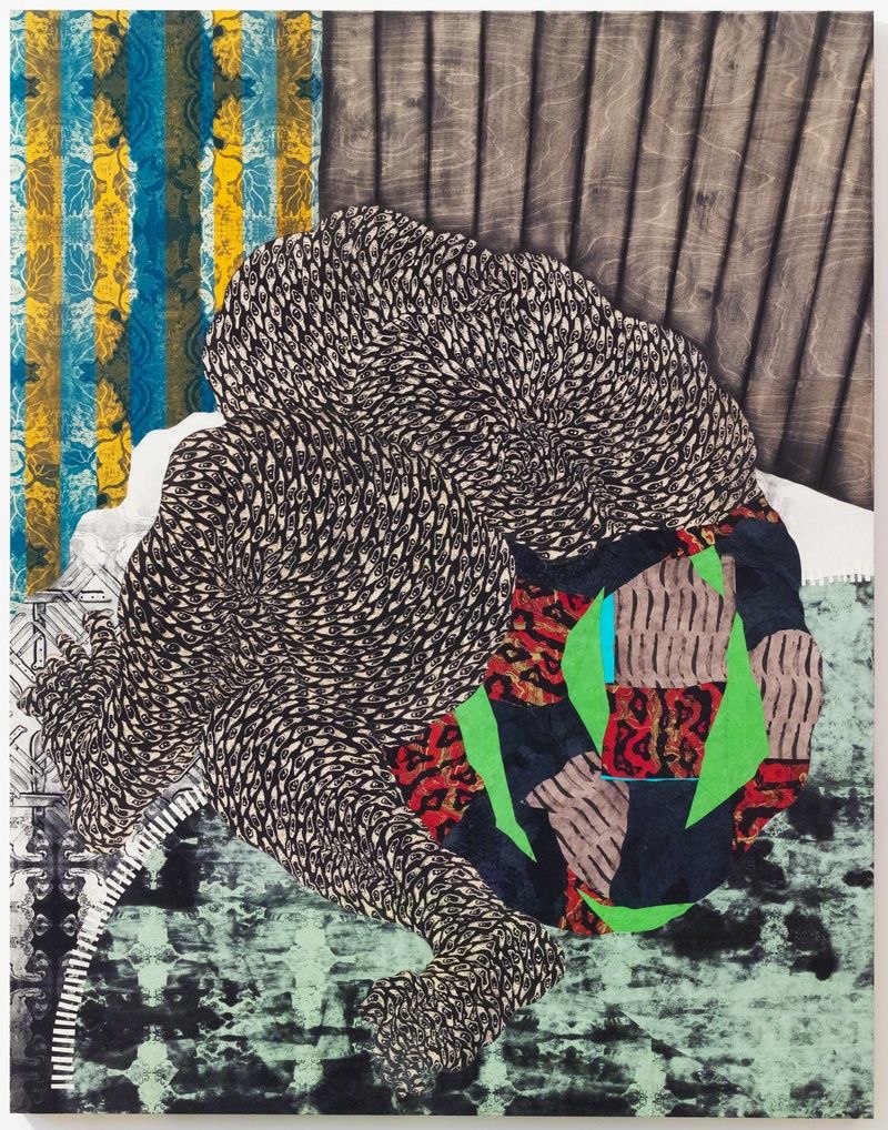 Didier William’s most recent body of work, Curtains, Stages, and Shadows -- as well as the title of this exhibition -- explores the relationship between the formal tensions and the narrative capacities of painting. A series of large-scale mixed-media paintings replete with bold decorative patterns and cut through eye-shaped forms insist on a beauty and a sensuality that is almost audible and in the realm of the haptic. The titles of the pieces appear in Haitian Kreyòl, unapologetically, with no English translations or subtitles. Inspired by memories of growing up in a resilient yet vulnerable Haitian community in Miami and coming of age when black and brown immigrant bodies have come to symbolize precarious living, William created these mixed-media pieces as pictorial rather than narrative. As with most of his works, the body takes center stage, literally and figuratively. For William, the recurring motif of the stage evokes the unsettled sensation of immigrant life in the diaspora. There is always a performance to be “Black”, a performance to be “West Indian” or “Caribbean,” and a performance to pale angle kòrèkteman. Consequently, for Kreyòl- speaking immigrant people, Blackness, Caribbeanness, and language competence are cultural markers that are in constant negotiation to determine belonging. The paintings highlight a deep sense of vulnerability, yet their aestheticization is marked by a desire for deeper and more complex thinking of how to transcend such vulnerability and become inherently provocative.