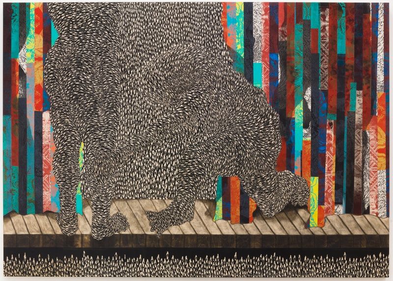 These paintings draw our attention to the provocative interstices made by the encounters among distinctive shapes, lines, forms, and colors. Thus, the method of looking is different. It needs to be decidedly haptic. It needs to be deliberately engaging. It needs to be mindful of the resonances created at the points of encounter between the composition of painting, the materiality of printmaking, and the precision of drawing. It is in this context that we can understand William’s work. The paintings capture the essence of power, sensuality, and presence while not shying away from the challenges hidden in the shadows.