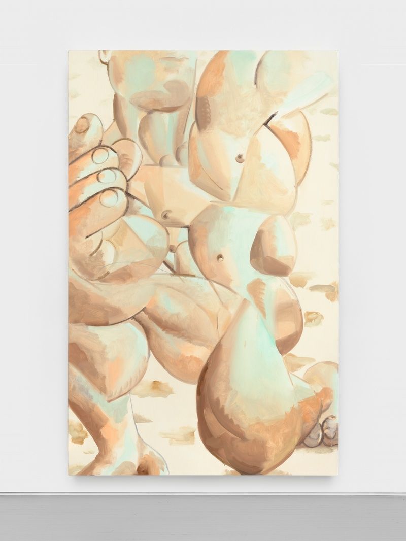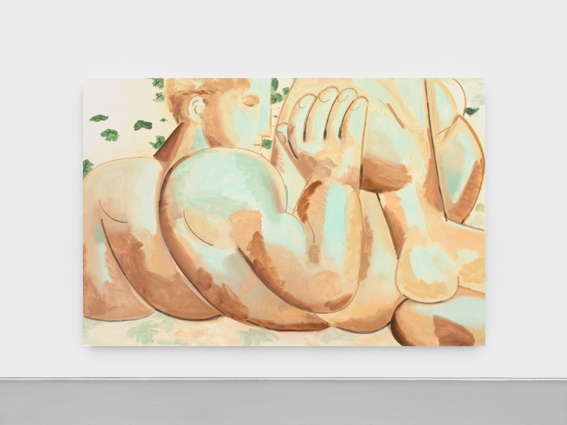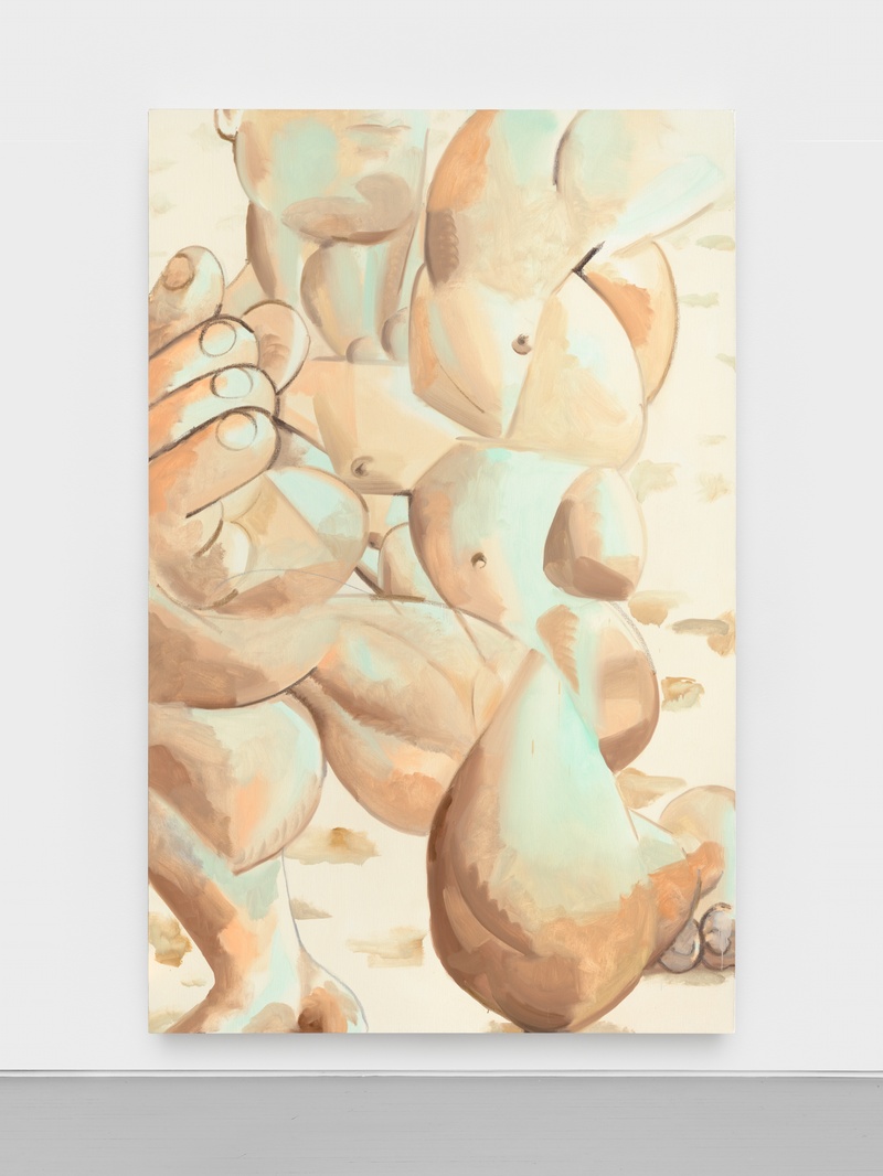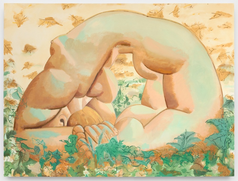 Each of these works began as a charcoal drawing, made at the same large scale as the painting that would follow. Produced through a stream of consciousness, Gómez set out to render a landscape or garden—but the human figure repeatedly appeared, overwhelming the container of its compositional frame, however large. At this point, the figure becomes one and the same with the landscape. Thus the central idea of this series emerges: where expression isn’t verbal but rather visual, where spoken language isn’t shared and human connection isn’t necessarily formed by personal interaction, the residuum of human visual expression becomes the interface for our own. This is the body as landscape, and vice versa. As Werner Herzog describes in Cave of Forgotten Dreams, the painting we encounter carries “memories of long forgotten dreams” and remains both familiar yet removed, “like the frozen flash of a moment in time.”