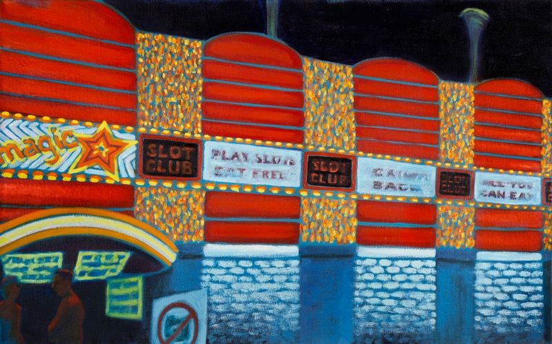 "The globalization of casino culture – socioeconomically, environmentally and politically – looms terrifyingly ascendant today. As sensory overload systems designed to untether participants from the restraints of normal reason take over every sector, consideration of the structural manifestations of this Architecture of Distraction is urgently needed. The seismic global shifts of the 21st century, particularly the bare knuckles “Winner Takes All” paradigm favored by the current US president foreground the issues of reality and illusion, machismo and vulnerability within the glossy rigged systems that operate virtually within the digital environment’s endless labyrinth of pop- ups, tweet storms, spam and scams. Earlier brick mortar manifestations of casinos and other spectacularly unnatural environments such as Coney Island, Times Square and Las Vegas are updated as digital-screen-rich spectacles lure the touch screen addicted to play and pay on and on.