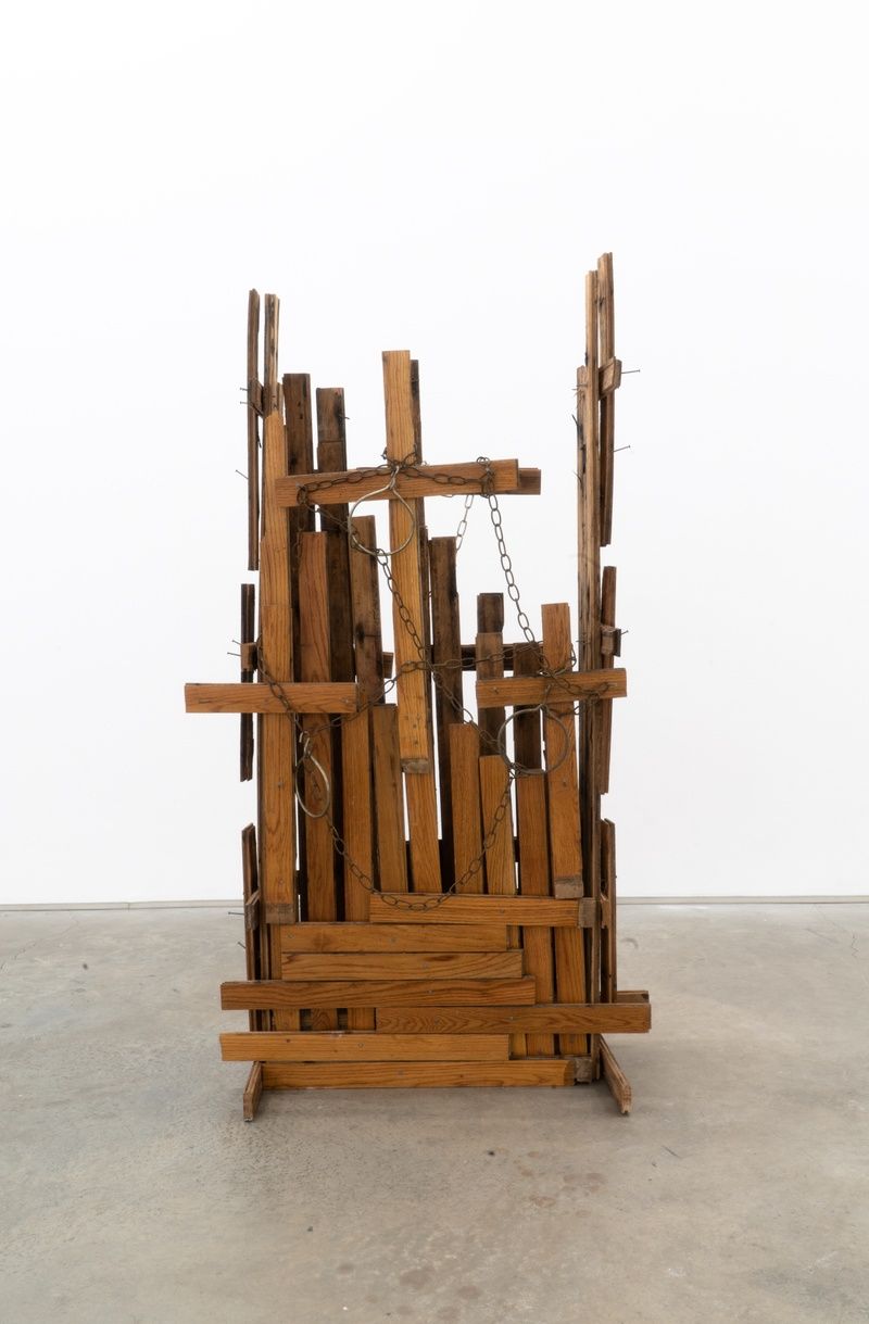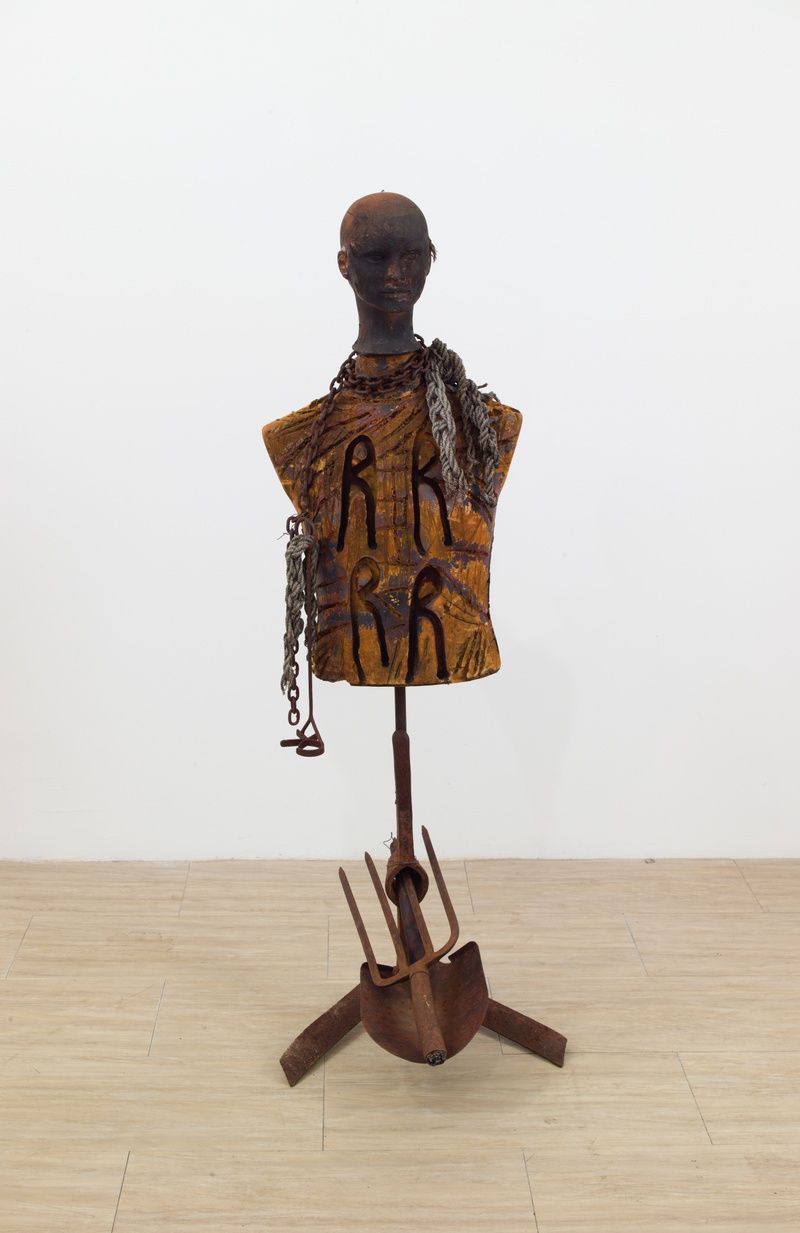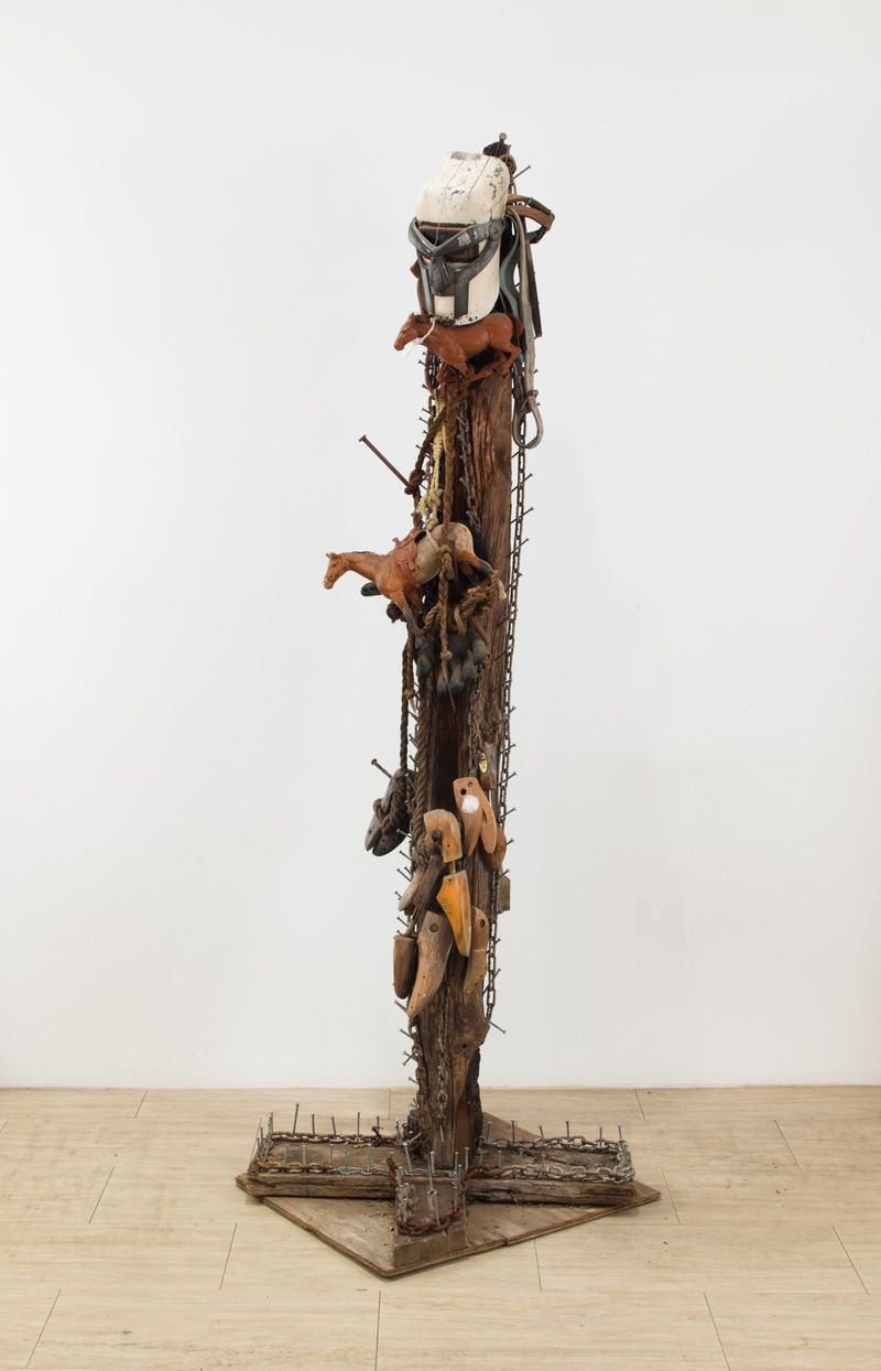 Minter’s sculptures made from found materials and objects suggest anthropomorphic figures, invoking their original, now anonymous users, as well as centuries of slave and peonage labor. The work’s historical testimony extends into the present, as Minter addresses the moral and political crises of our present days. Over time Minter has made works intended to be encountered outside of his African Village, which he describes as “message pieces.” The exhibition incorporates works from 1995-2012.
