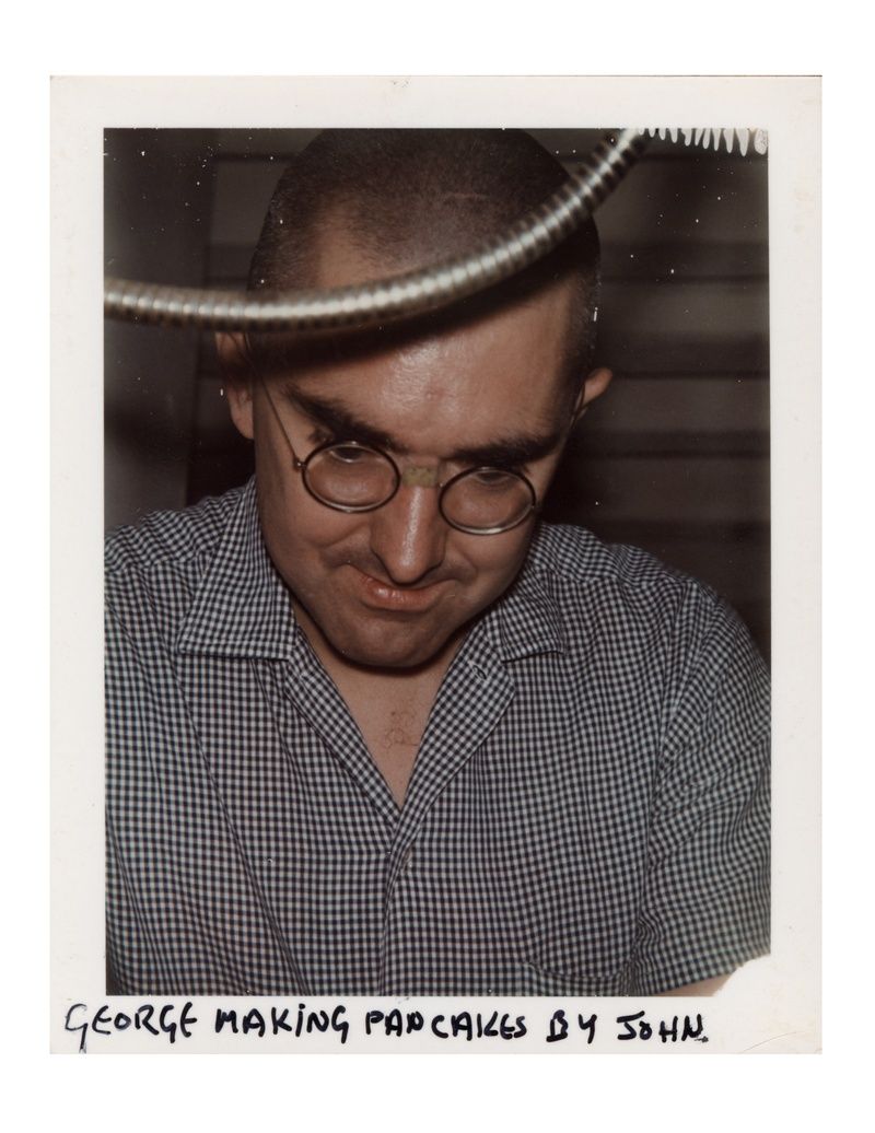 Alongside Mekas’ work are a set of polaroid portraits shot by his friend, John Lennon. Mekas recounts; "On June 29th, 1971, George Maciunas invited some of his good friends to a dumpling party. George was very proud of his dumplings... The party consisted of John Lennon, Yoko Ono, Andy Warhol, Peter Moore, my brother Adolfas, and a couple of others. It took place in George's 80 Wooster Street basement apartment, just bellow the Film-makers' Cinematheque. The dumplings weren't that great, but we all were in good mood and John was very excited to try his newly acquired Polaroid camera. Here is a glimpse of the evening, with some of John's polaroids and some mages from my Bolex."