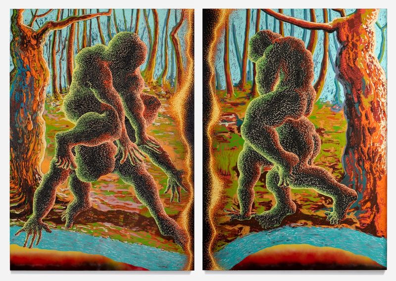 Marrying techniques of painting and printmaking with processes of carving and collage, William’s visual terrains are as layered in meaning as they are material. In these works, scales of personal narrative and biography merge and expand across historical timelines and into the realm of mythology. The result is a radical connection to generational memory that gives form to the varying complexities of diasporic identity and makes material its continual transformation. Presenting fourteen new paintings, Things Like This Don’t Happen Here advances William’s ongoing investigation of language, aesthetics, tradition, trauma, and autobiography in a manner that is deeply imaginative, mythological, and metaphysical in perspective.