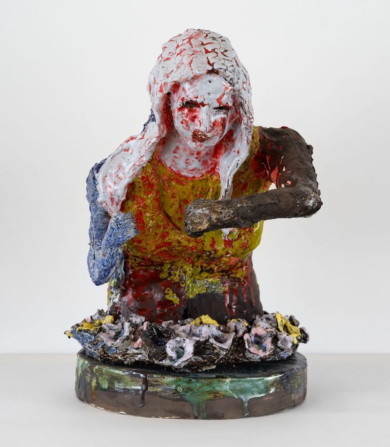 While Lahti eschews art making as an illustrative process, her ceramic figures concentrate and reflect the psychic, emotional, and phenomenal environments that surround them. The distinct natural surroundings of the Pacific Northwest, where the artist was raised and still lives and works today, remain a profound influence, layering past and present. At times unfathomably wild and monumental, while carrying forth a continual cycle of growth, death, and rebirth, this environment anchors the potency of Lahti’s work in connection with the indomitable beauty and chaos of the world at large, and of which it becomes a part. Meeting with the work’s various other origins and inflections, this lifelong presence rhymes the minor with the profound, weds the sacred and profane, and conjugates the sublime and grotesque through the act of unappeased examination.