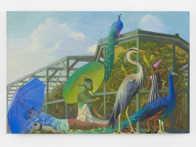 Throughout the exhibition Senior is a flaneur of the contemporary landscape with an anachronistic lens. The world he portrays seems at once random and rigorously choreographed, as if the universe achieved brief synchronicity. The world according to Seniors paintings is optimistic. An interconnected harmony is achieved through a disquieting level of control that determines everything from the pattern of a dog’s pelt to the placement of clouds in the sky. Though the artist himself never appears in his paintings, he is both nowhere and everywhere as we are reminded of the hand of the maker in everything.