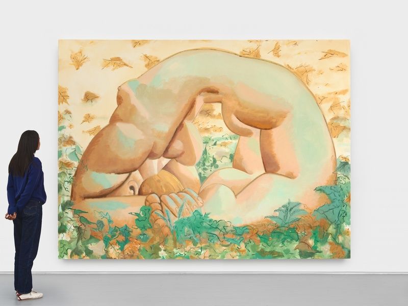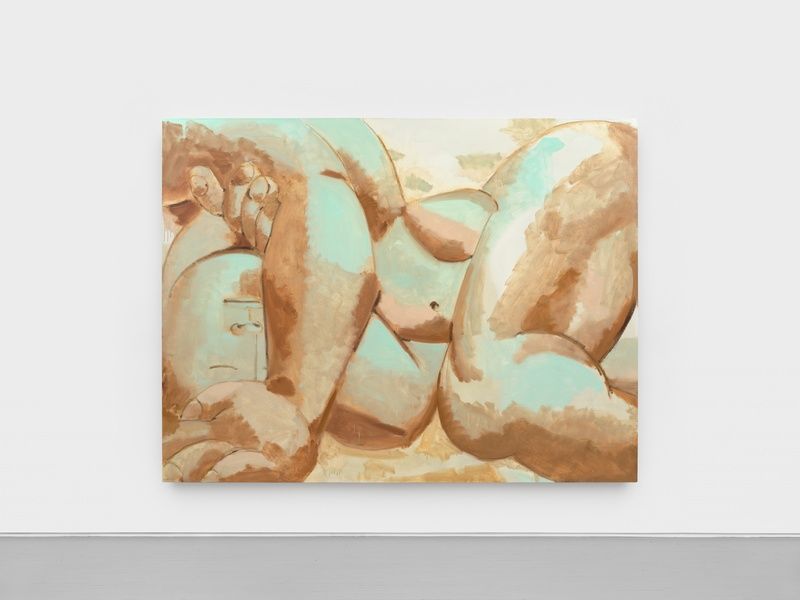 Each of these works began as a charcoal drawing, made at the same large scale as the painting that would follow. Produced through a stream of consciousness, Gómez set out to render a landscape or garden—but the human figure repeatedly appeared, overwhelming the container of its compositional frame, however large. At this point, the figure becomes one and the same with the landscape. Thus the central idea of this series emerges: where expression isn’t verbal but rather visual, where spoken language isn’t shared and human connection isn’t necessarily formed by personal interaction, the residuum of human visual expression becomes the interface for our own. This is the body as landscape, and vice versa. As Werner Herzog describes in Cave of Forgotten Dreams, the painting we encounter carries “memories of long forgotten dreams” and remains both familiar yet removed, “like the frozen flash of a moment in time.”