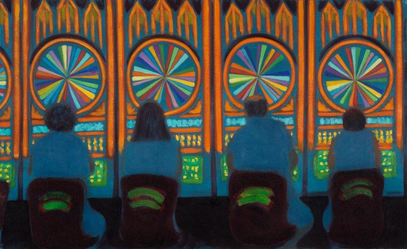 "The globalization of casino culture – socioeconomically, environmentally and politically – looms terrifyingly ascendant today. As sensory overload systems designed to untether participants from the restraints of normal reason take over every sector, consideration of the structural manifestations of this Architecture of Distraction is urgently needed. The seismic global shifts of the 21st century, particularly the bare knuckles “Winner Takes All” paradigm favored by the current US president foreground the issues of reality and illusion, machismo and vulnerability within the glossy rigged systems that operate virtually within the digital environment’s endless labyrinth of pop- ups, tweet storms, spam and scams. Earlier brick mortar manifestations of casinos and other spectacularly unnatural environments such as Coney Island, Times Square and Las Vegas are updated as digital-screen-rich spectacles lure the touch screen addicted to play and pay on and on.
