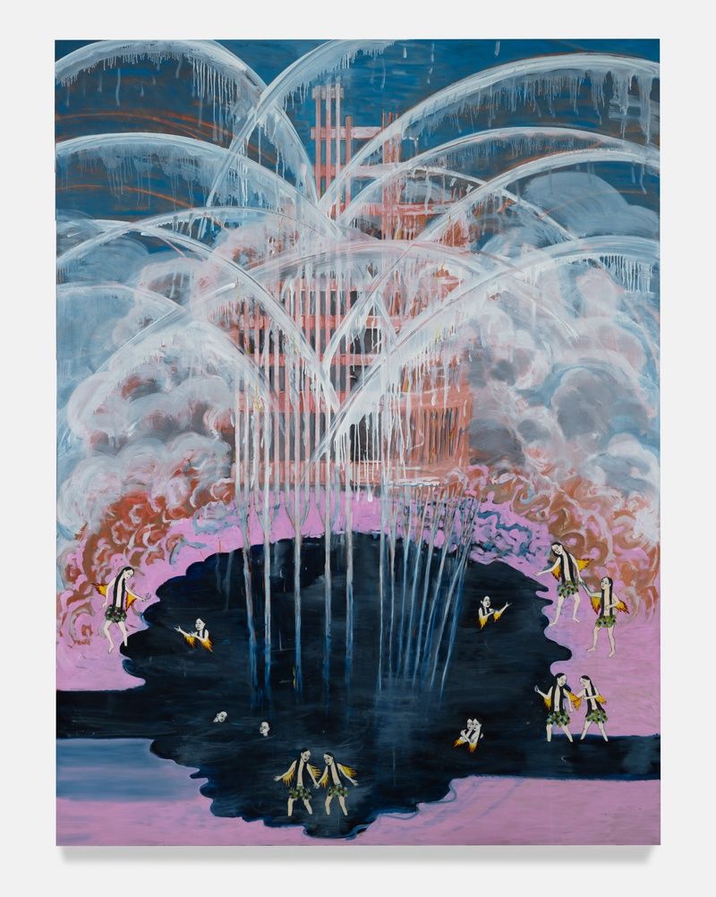 James Fuentes Gallery is pleased to present Becky Howland, Paintings: 1995-2025 in New York. Active since the late 1970s, Howland is widely recognized for her works expressing a deep ecological concern in the presence of energy extraction and distribution, political power, and the environmental consequence of contemporary life. Celebrated for the highly direct and inventive nature of her art making, Howland is also a key figure in experimental artist collectives still active today in New York City, notably as a member of Colab (Collaborative Projects Inc, formed 1977) and for her principal role in the landmark “Real Estate Show,” which established ABC No Rio in 1980. Against the backdrop of such activities as well as her better-known large-scale sculptural works, this exhibition presents a focused survey of her paintings, many of which have never previously been exhibited.