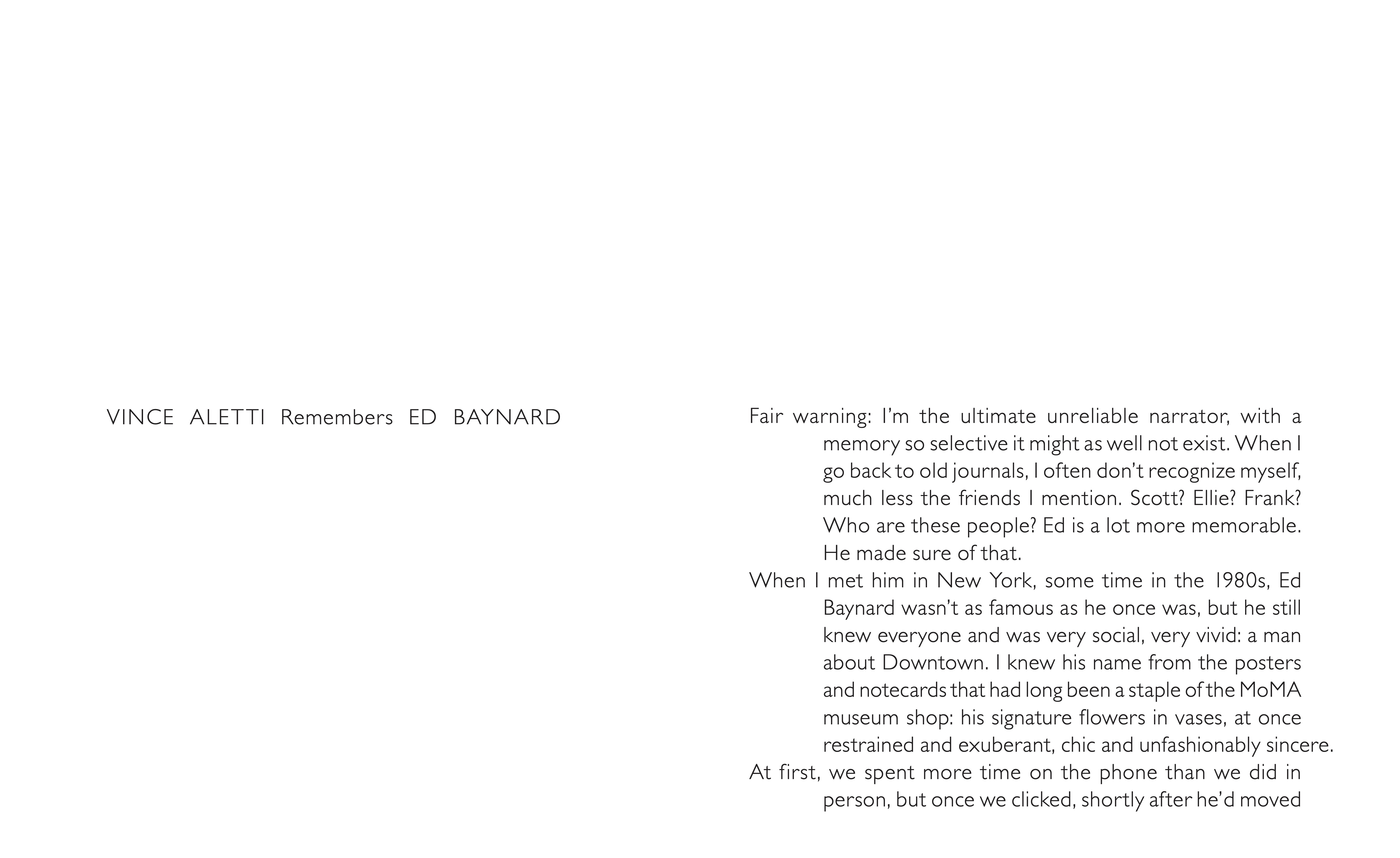 ED BAYNARD: In a Yellow Room presents a distilled overview of the artist's still-life paintings, prints, and works on paper that recall the Japanese tradition of Ukiyo-e in their restrained elegance. Baynard's stylized compositions of flowers, plants, and vessels place bursts of color and trompe l’oeil details against flat monochrome backgrounds, infusing romantic subject matter with minimalist form. Featuring an essay by critic Vince Aletti.