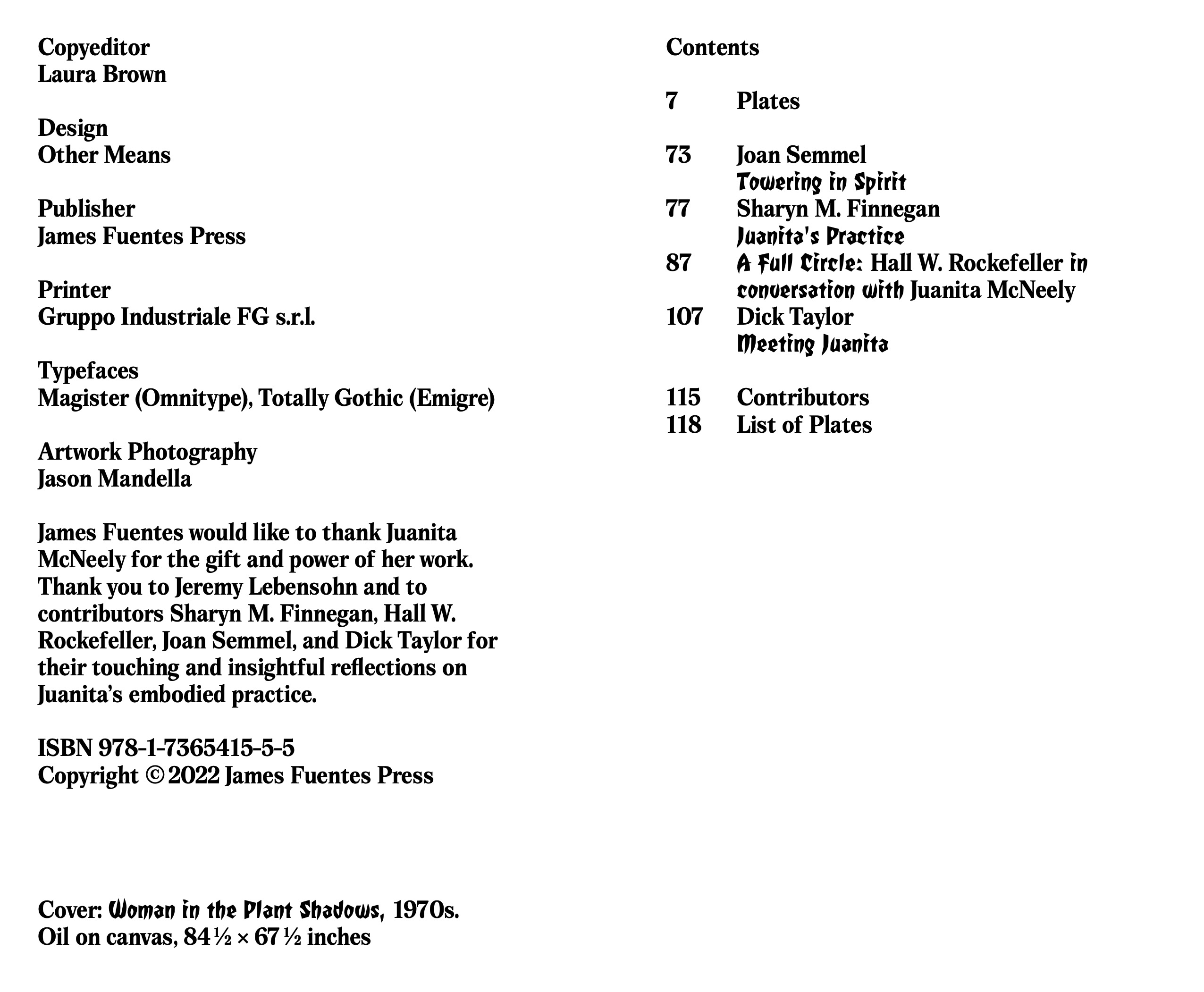 Offering a visual overview of Juanita McNeely's five-decade career as a painter in 33 color plates, this publication introduces personal reflections from the artist's earliest peers, Joan Semmel and Dick Taylor, as well as an essay on McNeely's practice from Sharyn M. Finnegan, and a new conversation with the artist conducted by Hall W. Rockefeller.